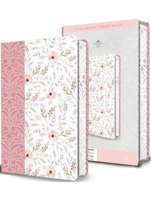 BIBLIA RVR 1960 TAMAÑO MANUAL LETRA GIGANTE SIMIL PIEL ROSADA CON FLORES (CANTOS PINTADOS)