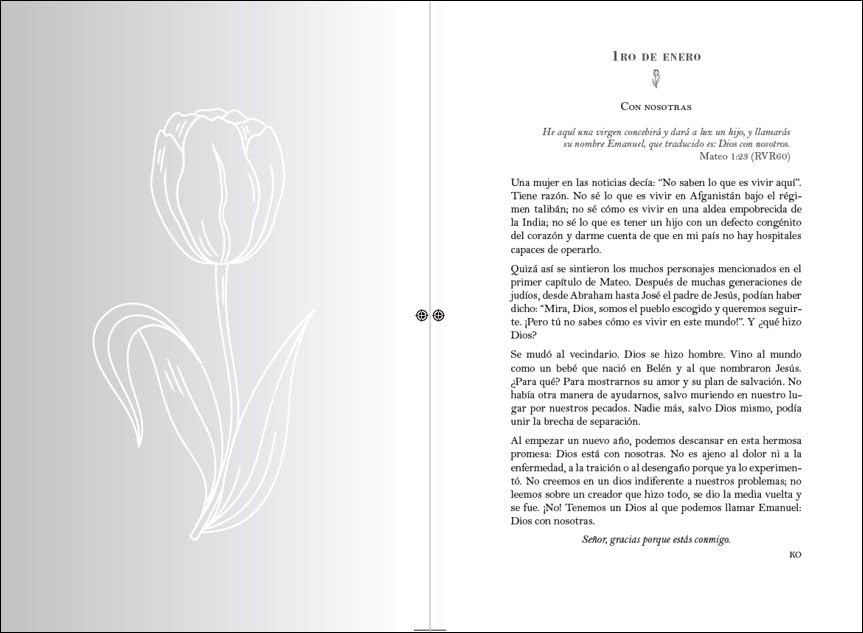 Este libro de devocionales ayudará y motivará al lector a enfocar su devocional en Dios y Su Palabra. Un año con Dios presenta un devocional para cada día del año. Cada uno de estos devocionales busca que el lector profundice en su relación con Dios y aplique el conocimiento, los valores y la sabiduría que se encuentran en el Nuevo Testamento a la vida diaria. Cuenta con muchas ilustraciones, gran colorido con toque femenino y contenido inspiracional en cada uno de los 365 devocionales diarios y lecturas bíblicas.