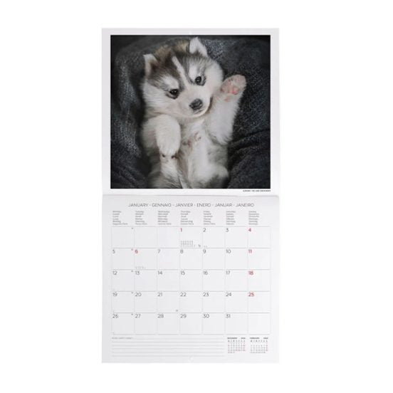 Calendario fotográfico de pared 2026 (30 x 29 cm) con surtido de fotos, uno para cada mes, diseño Puppies. Contiene 12 fotografías más planificador anual, espacios con signos del zodíaco y días festivos internacionales. En cada página, mes anterior y mes posterior. Anota número de la semana. Este producto está hecho con materias primas procedentes de bosques gestionados de forma sostenible, con papel certificado FSC y fabricado en Europa.