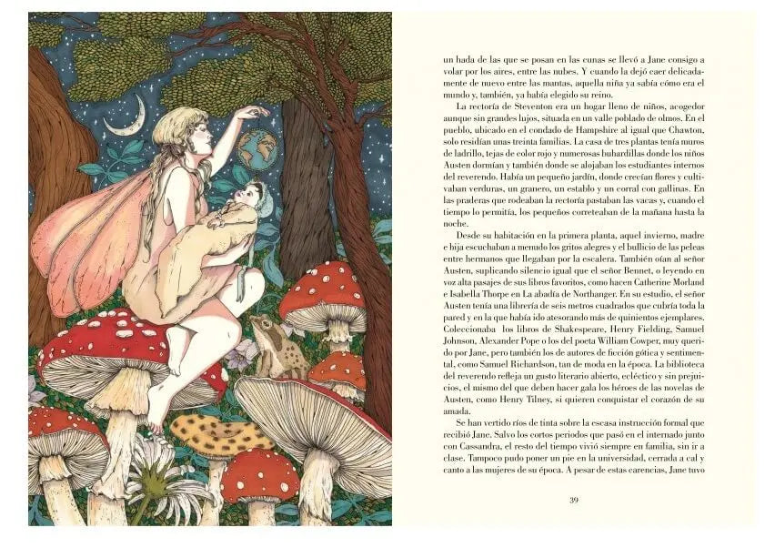 Jane nace en la rectoría de Steventon en una familia devota a los libros y al conocimiento. Rodeada de hermanos con los que comparte lecturas en voz alta y representaciones de teatro, Jane destaca por su ingenio y su pensamiento libre, y encuentra en la escritura un espacio de reflexión, pertimento y, finalmente, reconocimiento.