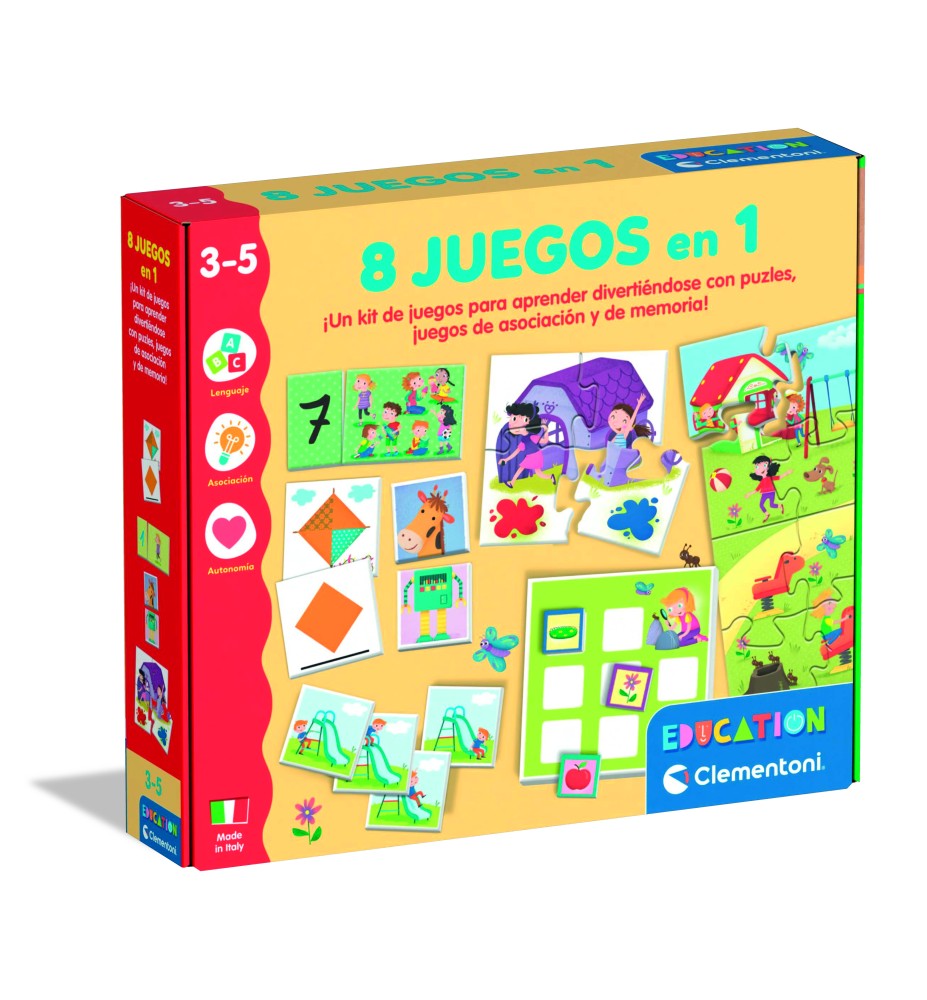El principal atractivo del Clementoni 8 Juegos en 1 55605 es su versatilidad, ya que incluye ocho propuestas diferentes en un solo producto. Entre ellas se encuentran juegos de lógica, memoria, asociación, cálculo, observación y destreza, lo que garantiza horas de entretenimiento variado y educativo. Esta diversidad permite que los niños no se aburran y exploren nuevas formas de aprender jugando.