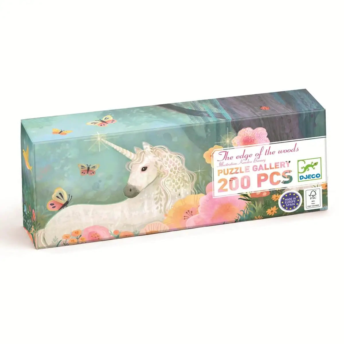 El Borde del Bosque es un rompecabezas de galería de 200 piezas que presenta un mundo fantástico. ¡Los ilustradores tuvieron rienda suelta con este novedoso formato de rompecabezas extralargo! Una forma divertida y original para que los niños descubran las pinturas